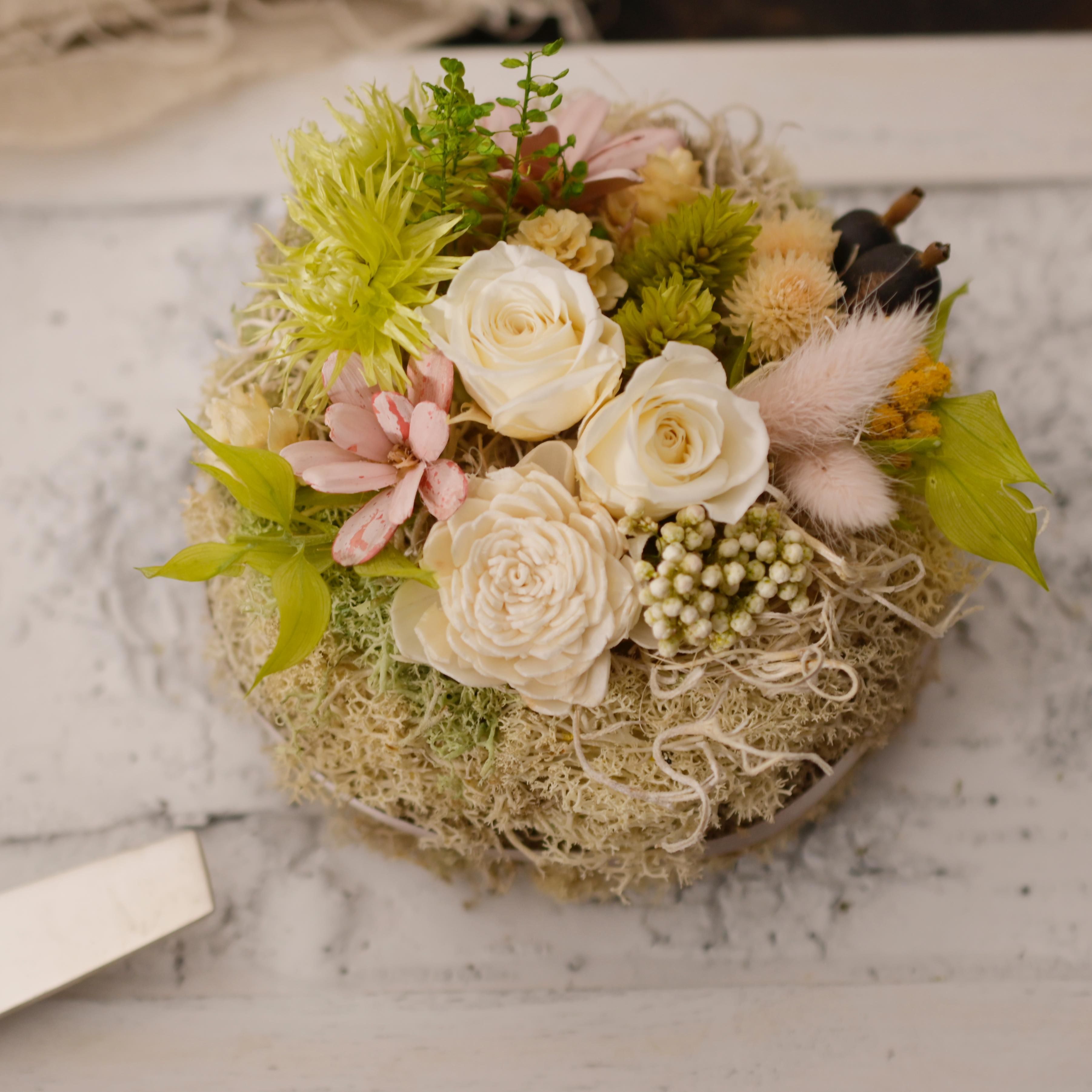 TOIRO THE GIFT PRODUCTSの新しいブランド、Petite Dried Flowers Cakeのドライフラワーケーキです。