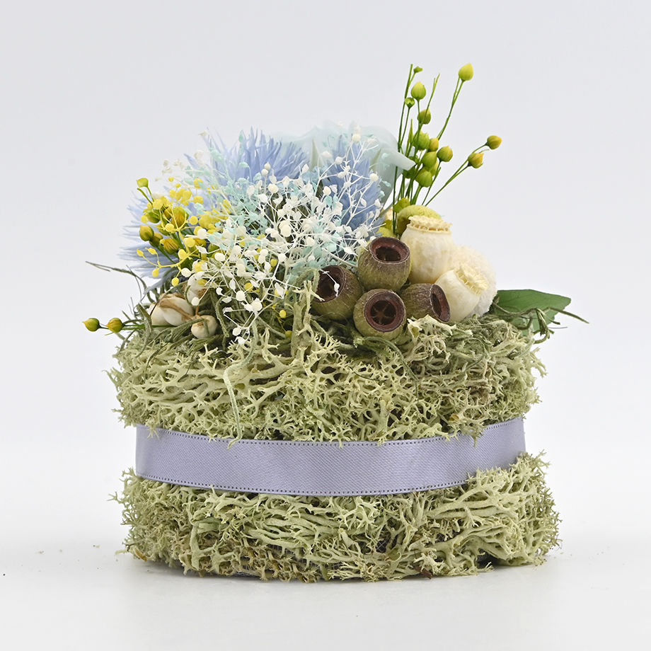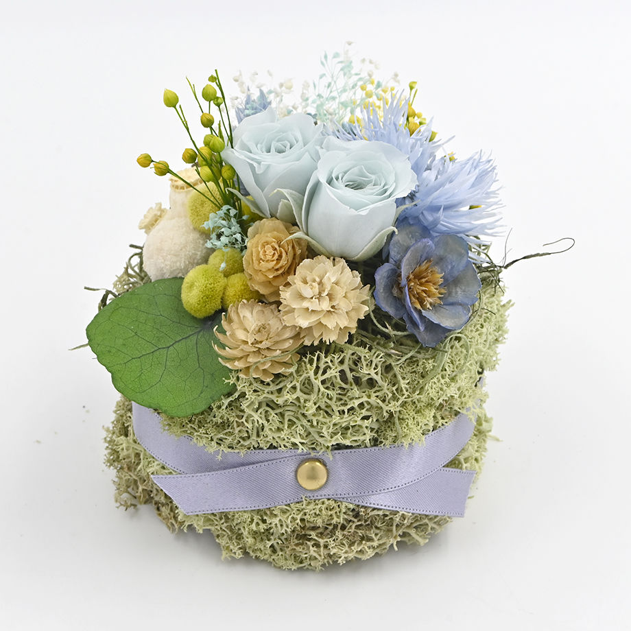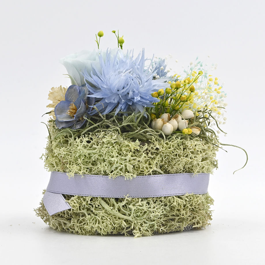 小さなドライフラワーケーキは、窓辺や玄関、デスクの上など場所を選ばず、お好きな場所に置くことができます。少しだけ日常を変えたい方へのギフトや自分使いとしても、いかがでしょうか?