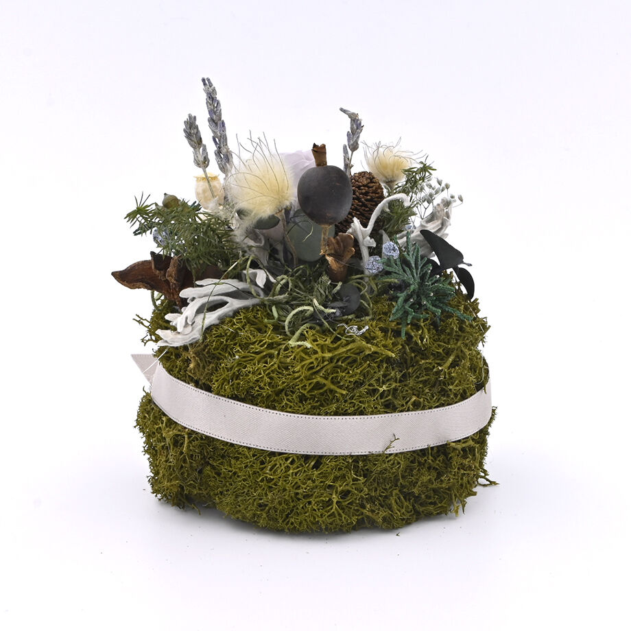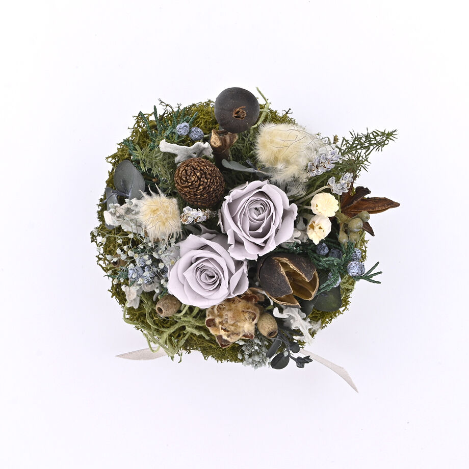 ※なるべく接着剤を使用しないで制作しています。振動などでドライフラワーが外れることがありますので、安定した場所にディスプレイしてください。