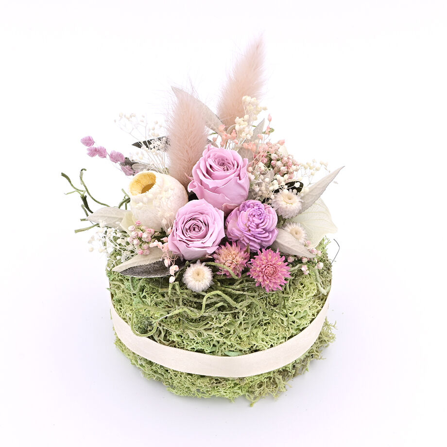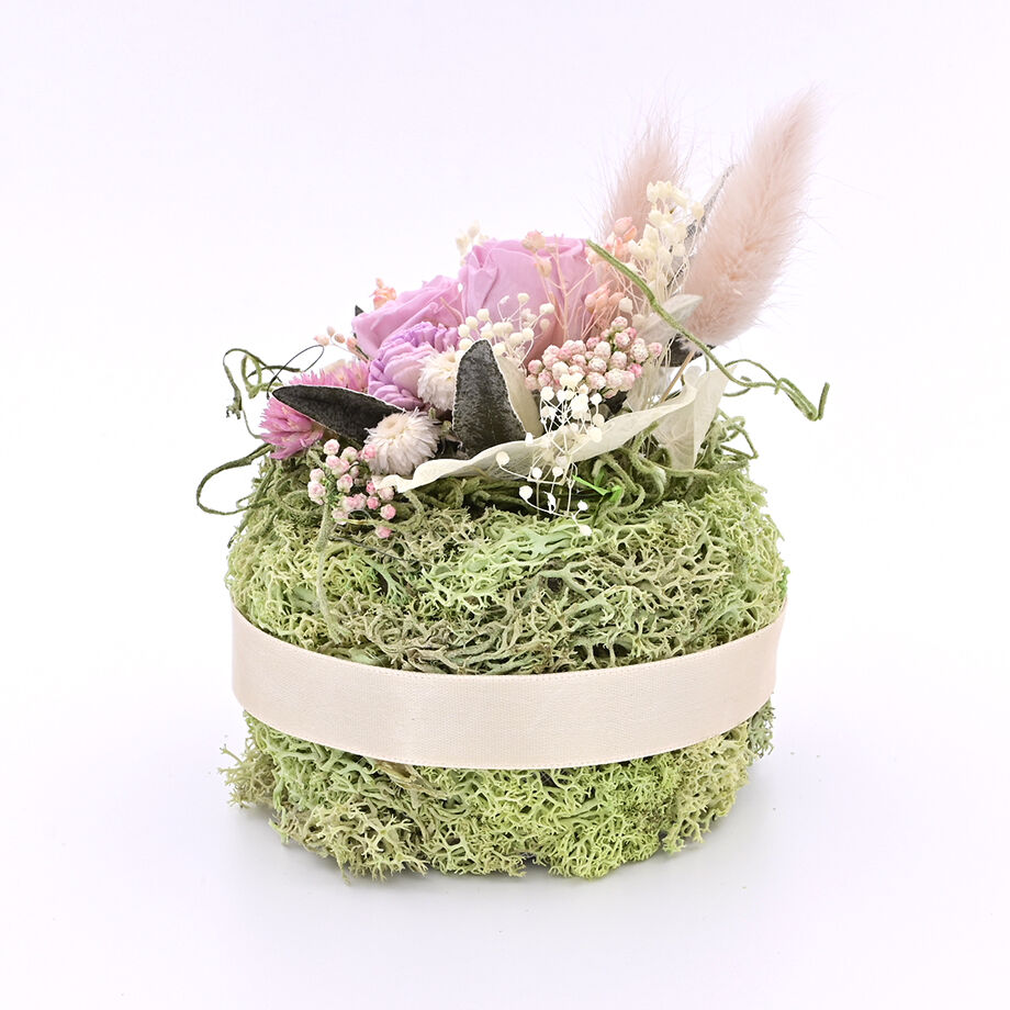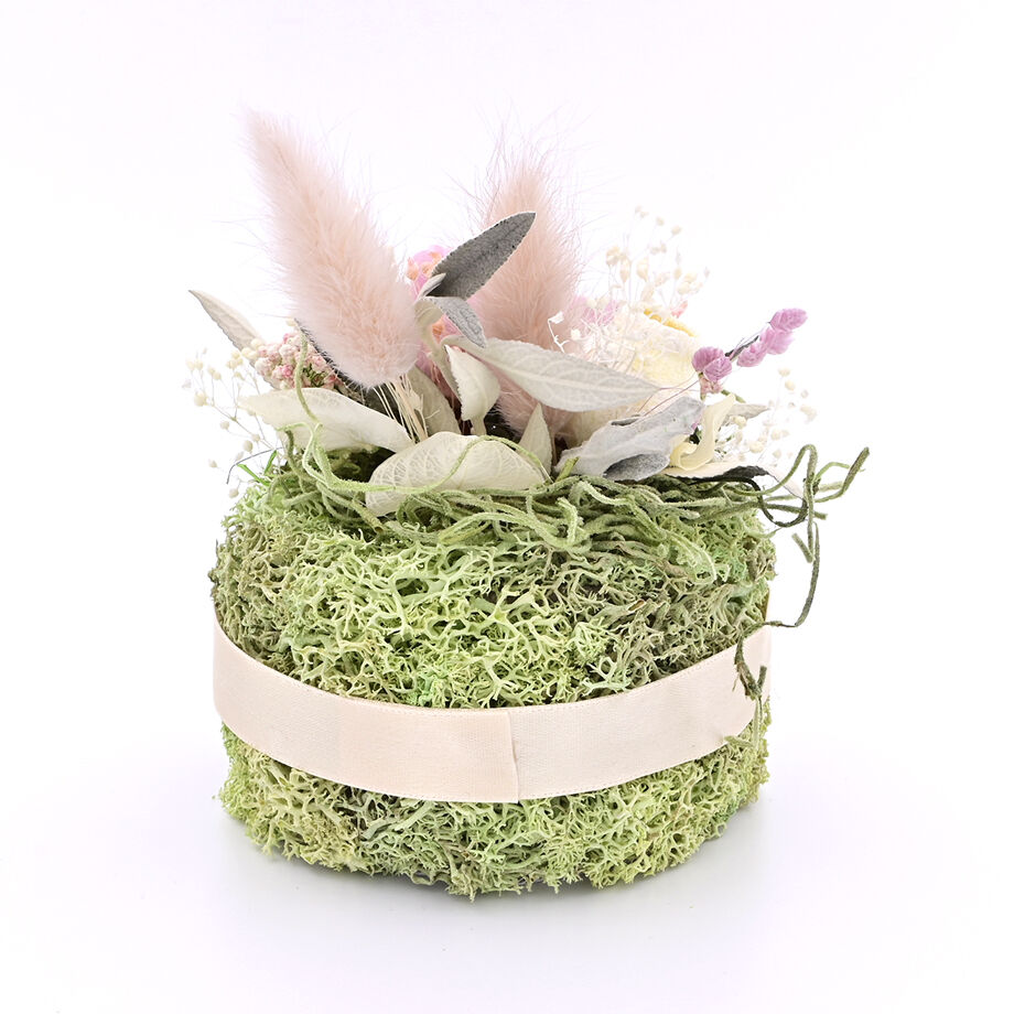 小さなドライフラワーケーキは、窓辺や玄関、デスクの上など場所を選ばず、お好きな場所に置くことができます。少しだけ日常を変えたい方へのギフトや自分使いとしても、いかがでしょうか?