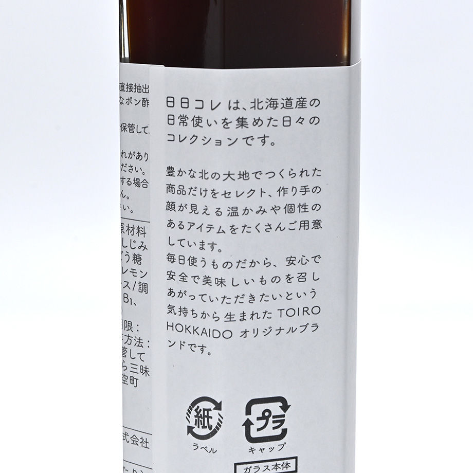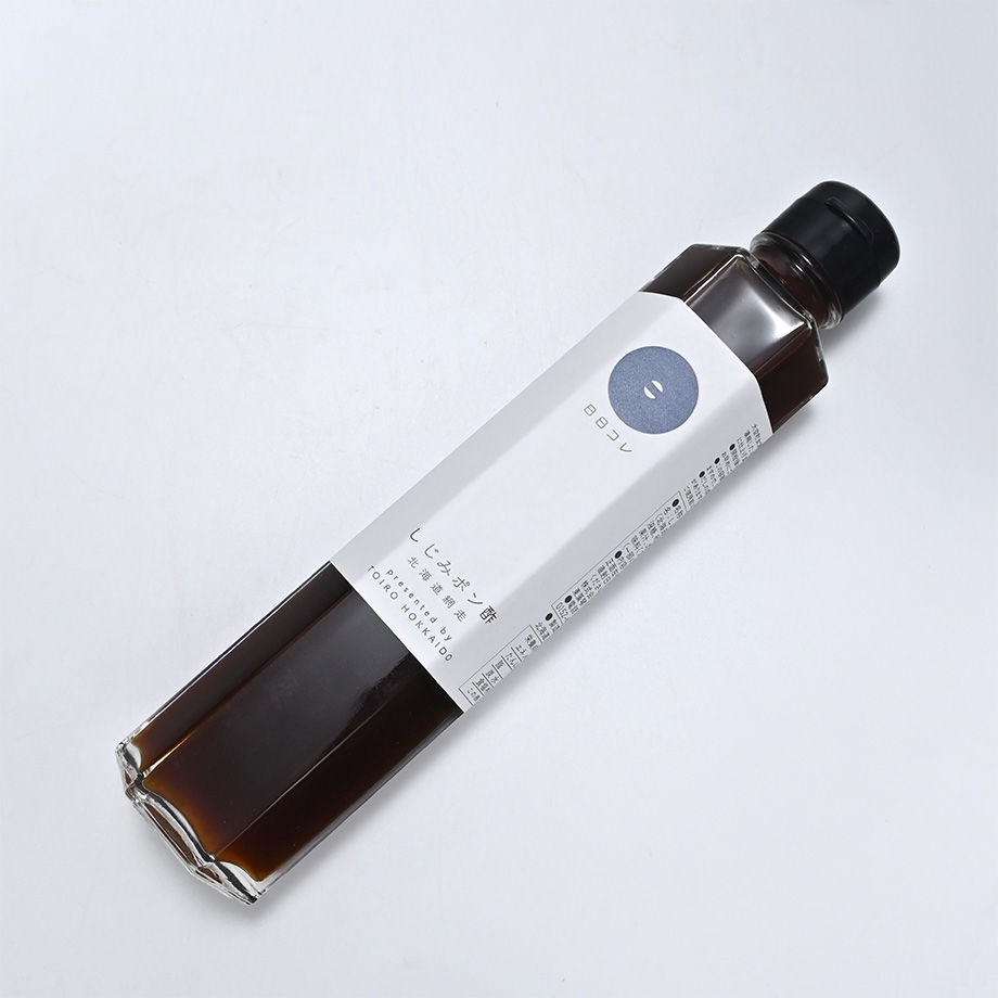 北海道大空町女満別湖畔で獲れたしじみ貝から直接抽出した濃厚エキスを使用した、風味豊かなポン酢です。酸味を抑え、しじみダシの効いたしじみポン酢は、食材問わずどんなお料理にでもご使用いただけます。また、サラダのドレッシングにお使い頂いても美味しく召し上がれます。